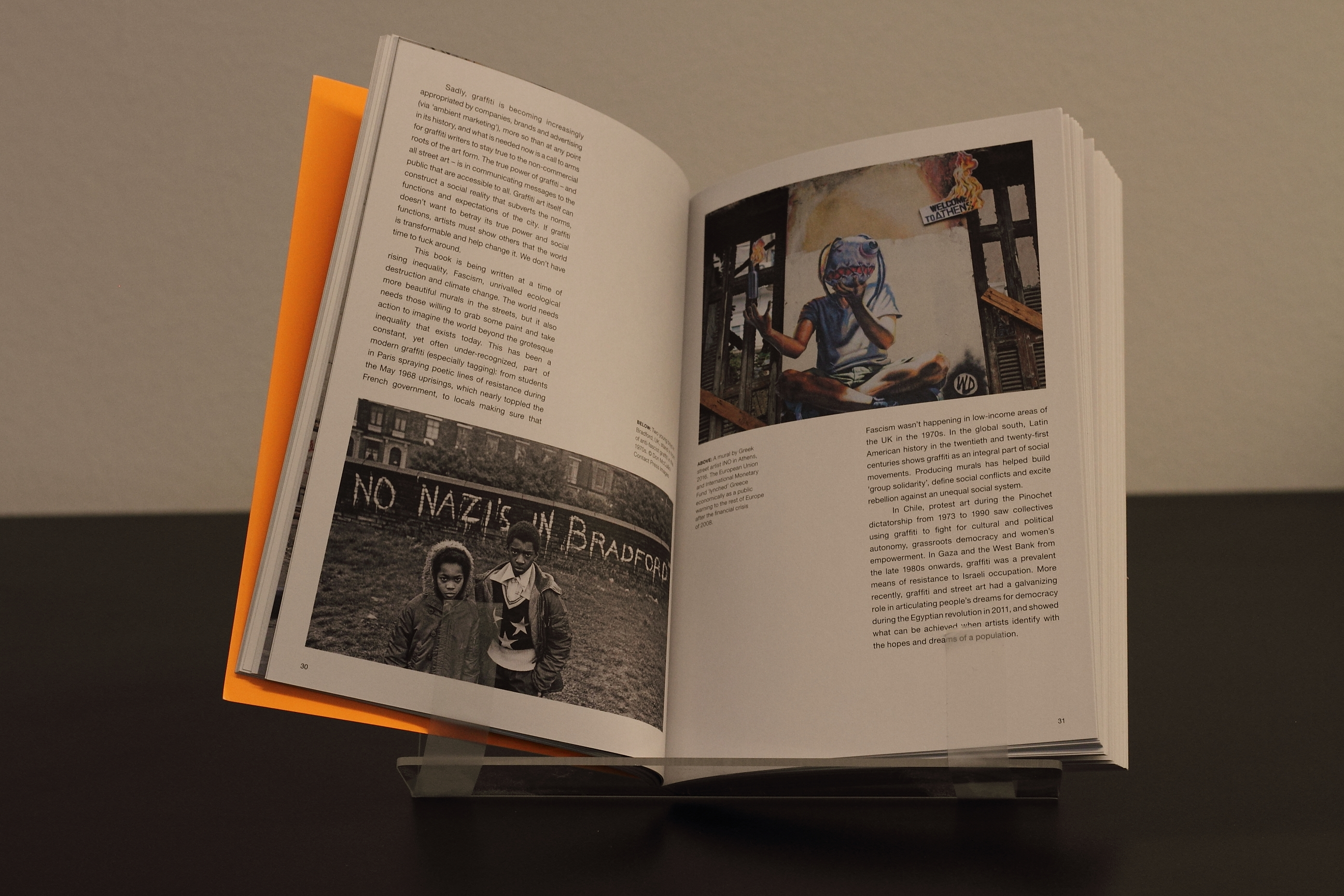 Collaborators such as Axel Void, Daniel Muñoz, Ernest Zacharevic, and the Unmute Gaza collective appear across its pages, reinforcing Escif’s broad, intersectional approach to resistance and creation. Students, technicians, and poetic advisors alike are credited, with poetic guidance and frank gratitude.