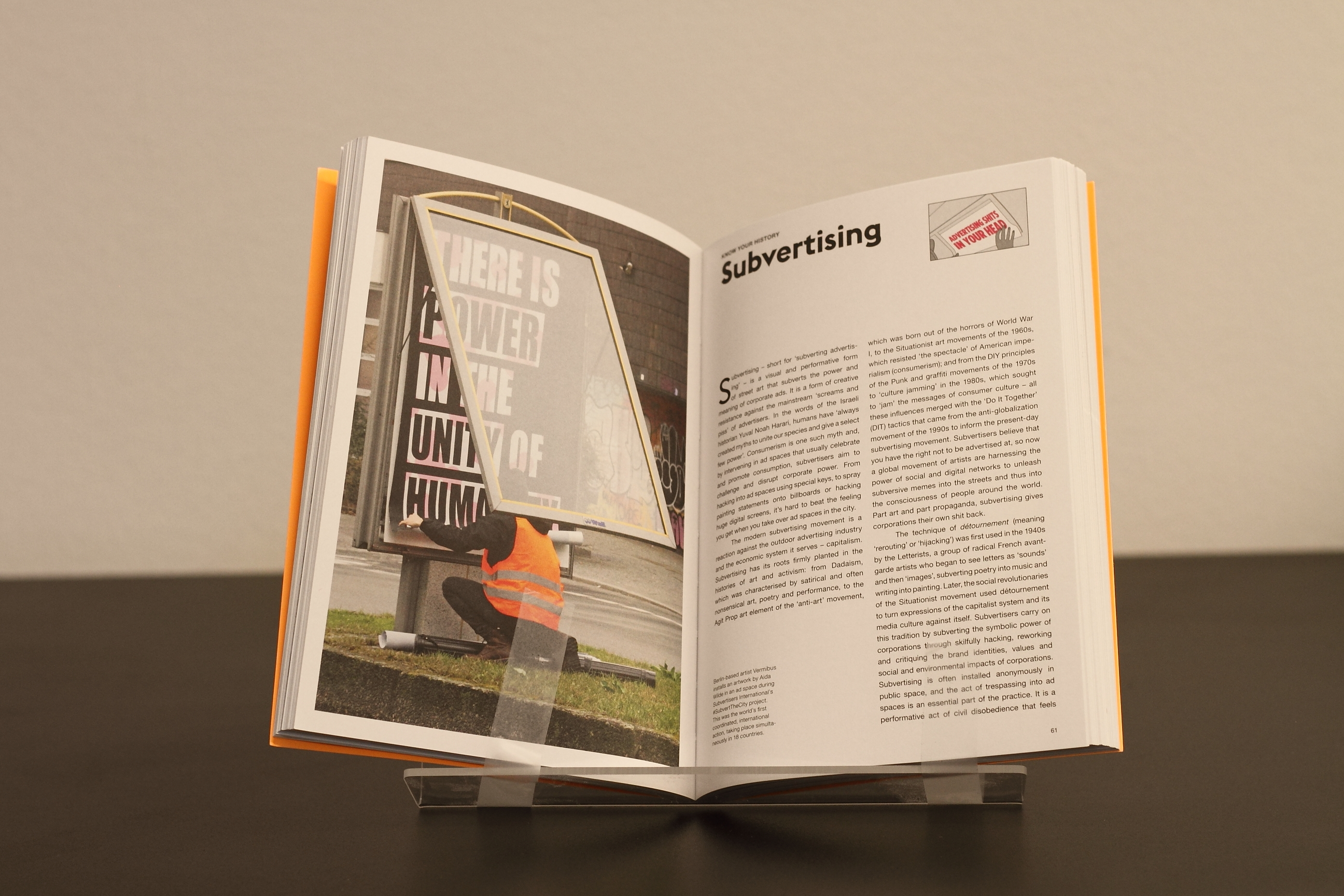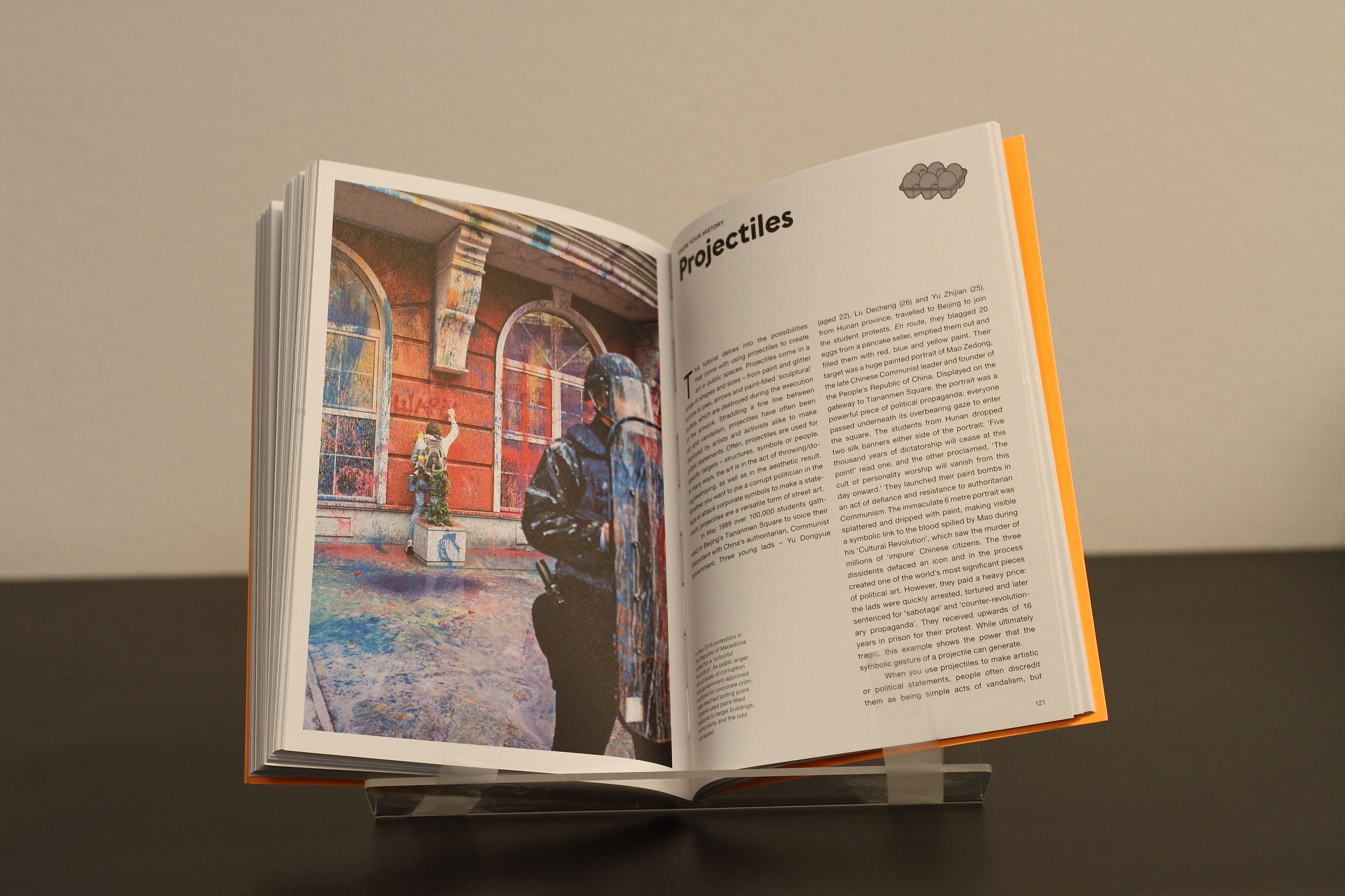 Spanning twelve years of studio and mural work, public interventions, installations, and collaborations, Los cimientos de la armonía y de la invención is Escif’s most comprehensive book to date, and possibly his most deliberate. At 600 pages, this massive, clothbound volume is both an archive and a slow meditation, mirroring the artist’s own evolution from a clever, idea-driven street painter into a conceptual provocateur whose understated gestures leave wide, lingering ripples of interpretation. Drawing its title from Vivaldi’s Il cimento dell'armonia e dell'invenzione, the book positions Escif’s art as both experiment and orchestration—a counterpoint of humor and grief, silence and confrontation, metaphor and material.